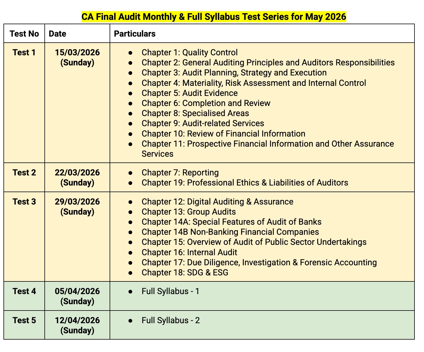 CA Final Audit Monthly & Full Syllabus Test For May 2026