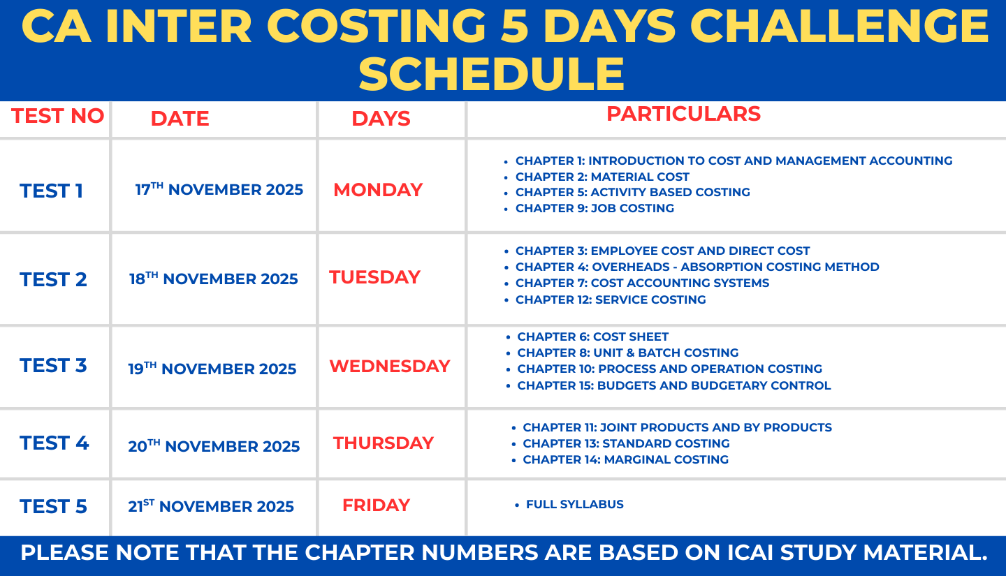 CA Inter Costing 5 Days Challenge for January 2026 Batch 3
