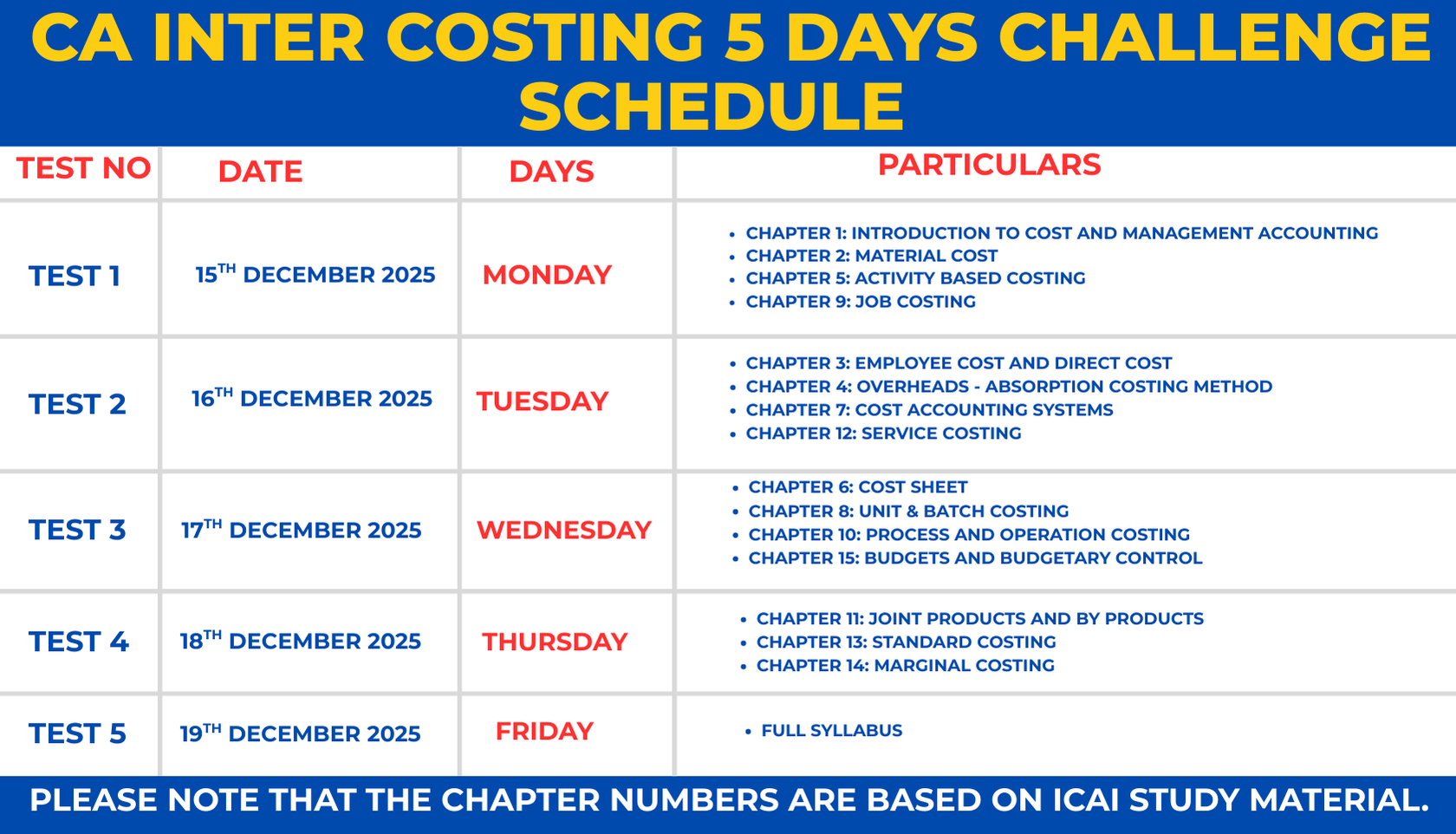 CA Inter Costing 5 Days Challenge for January 2026 Batch 4