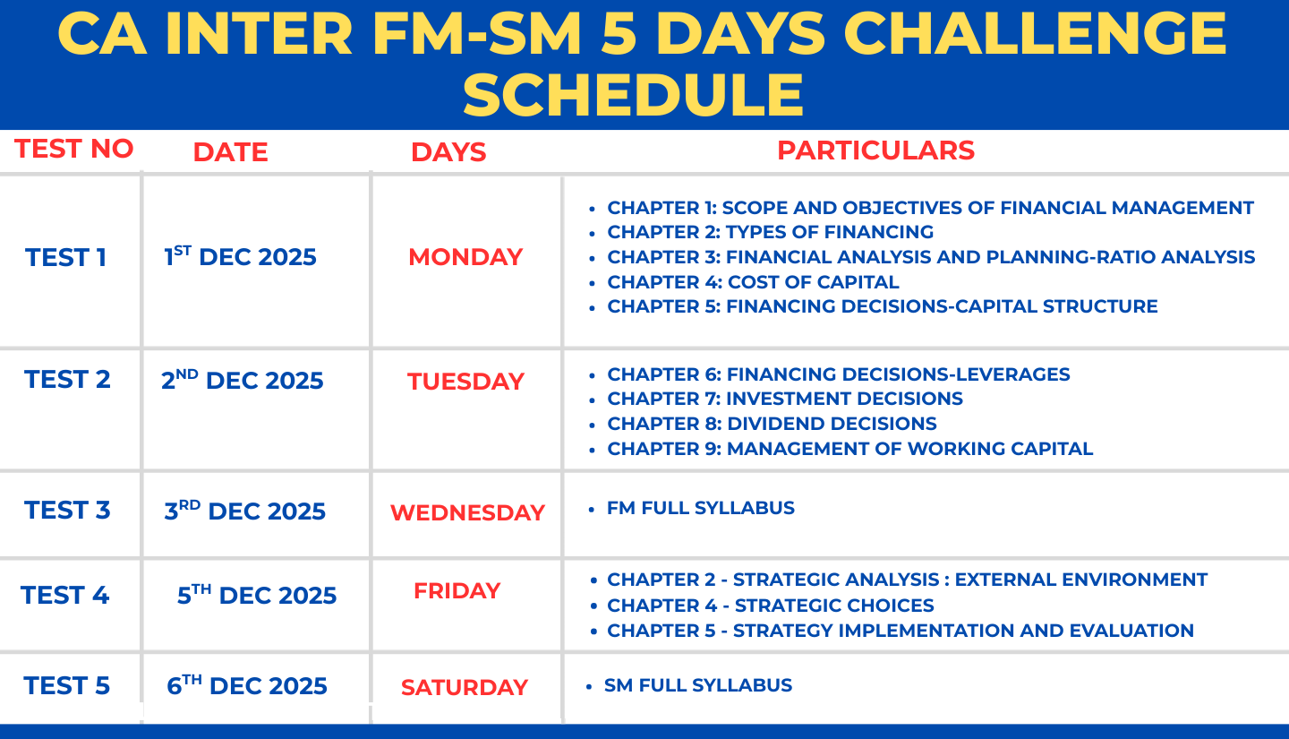 CA Inter FM-SM 5 Days Challenge Combo for January 2026 Batch 2